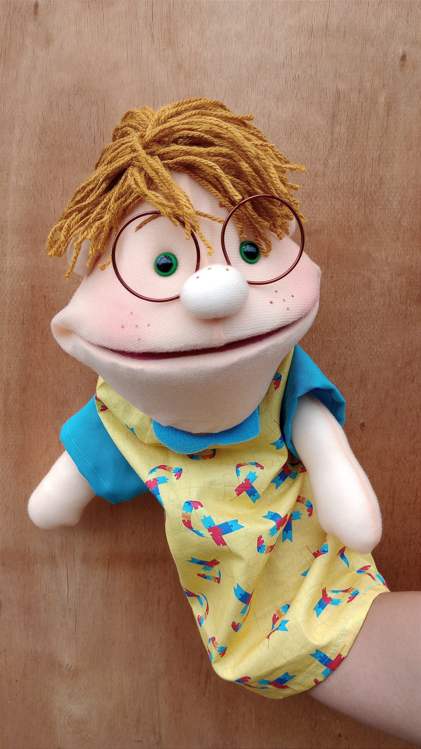 O Fantoche Menino Tea é um brinquedo educativo e interativo, ideal para estimular a criatividade e a imaginação das crianças. Confeccionado em tecido macio, o fantoche apresenta detalhes como cabelos de linha marrom, óculos e roupas coloridas estampadas, que trazem um visual divertido e atraente. Seu tamanho é perfeito para as mãos das crianças, facilitando o manuseio e a manipulação durante brincadeiras ou atividades pedagógicas. Além de divertir, o fantoche ajuda no desenvolvimento da coordenação motora, expressão oral e socialização das crianças.